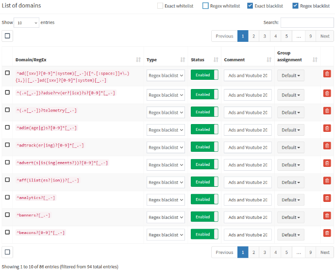 Grundsätzlich gilt Domain und RegEx Eigene Blacklist erstellen.